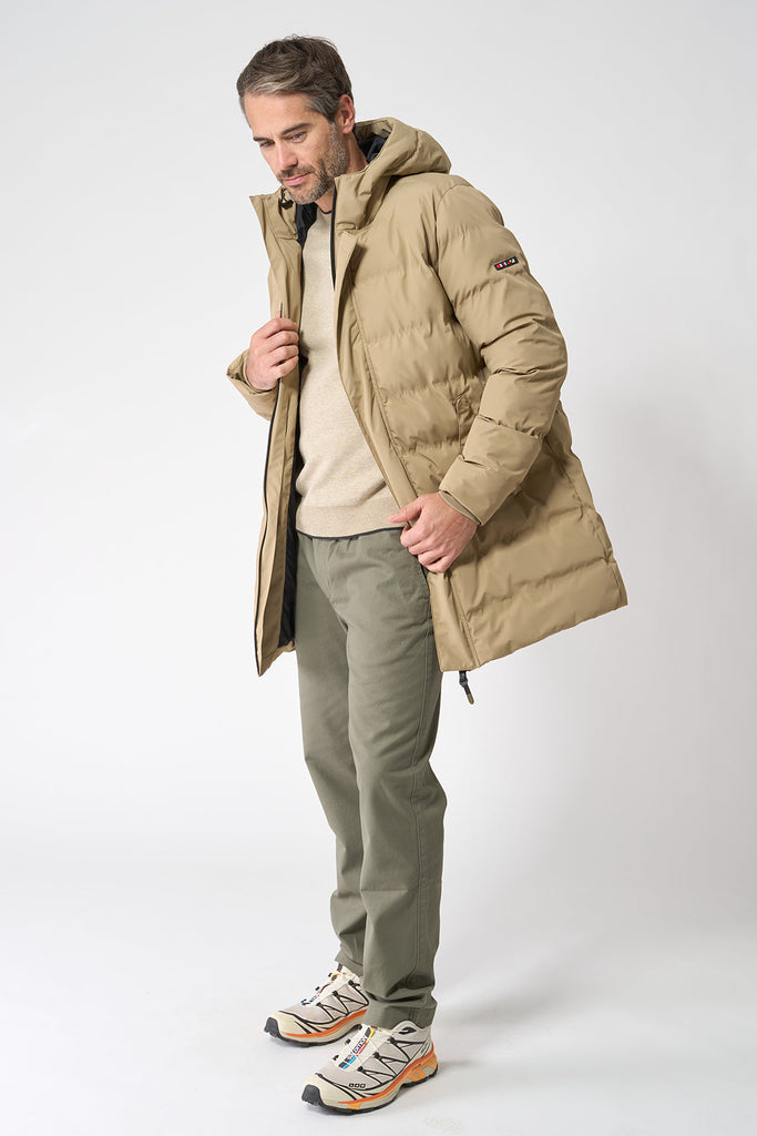 Abrigo puffy o chubasquero 100% impermeable con capucha
